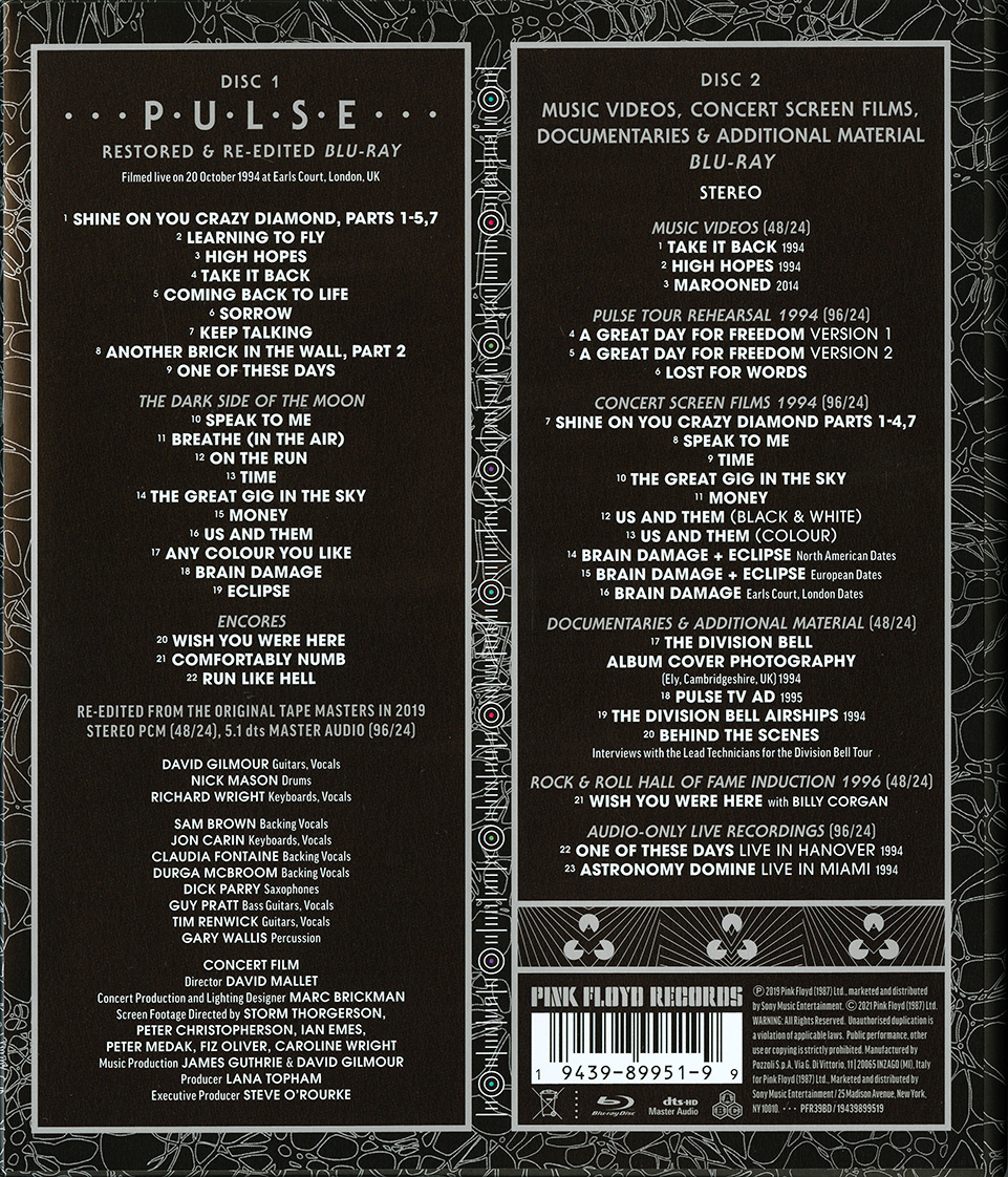 Release Information: Restored and re-edited. Music videos. Concert screen films. Documentaries. PULSE tour rehearsal footage. 60 page booklet.