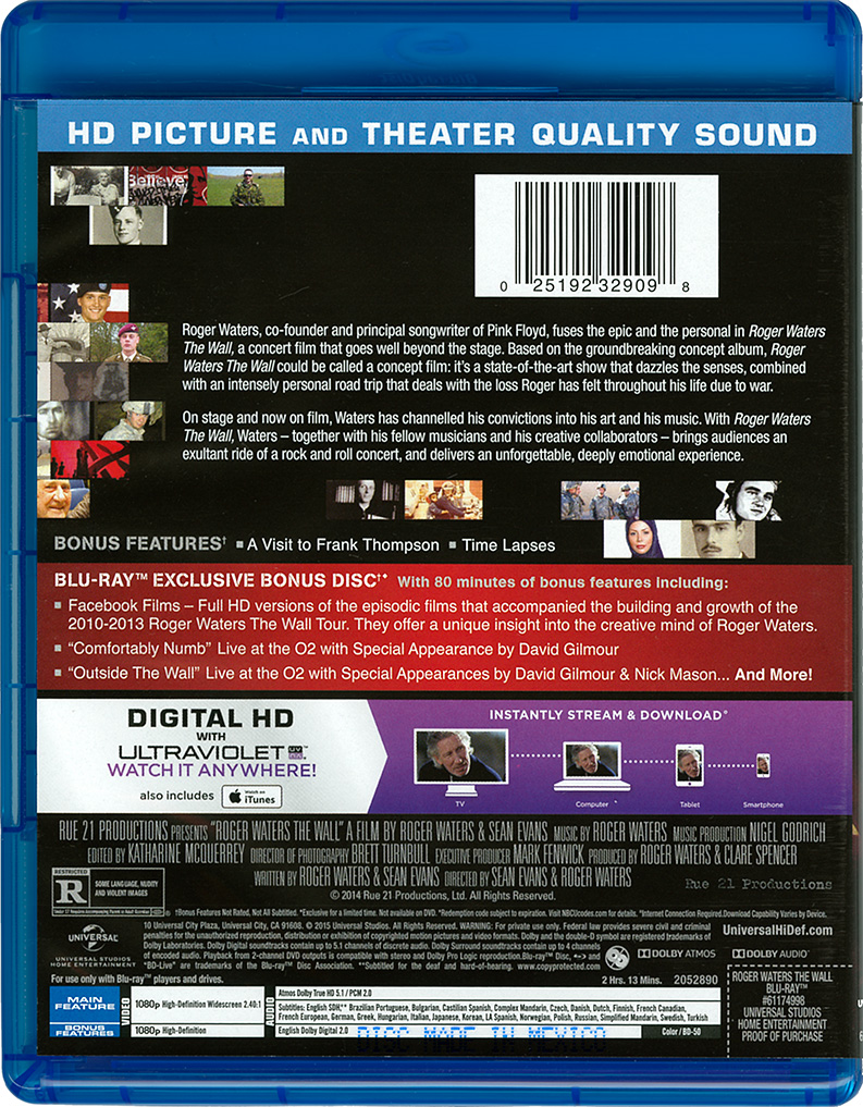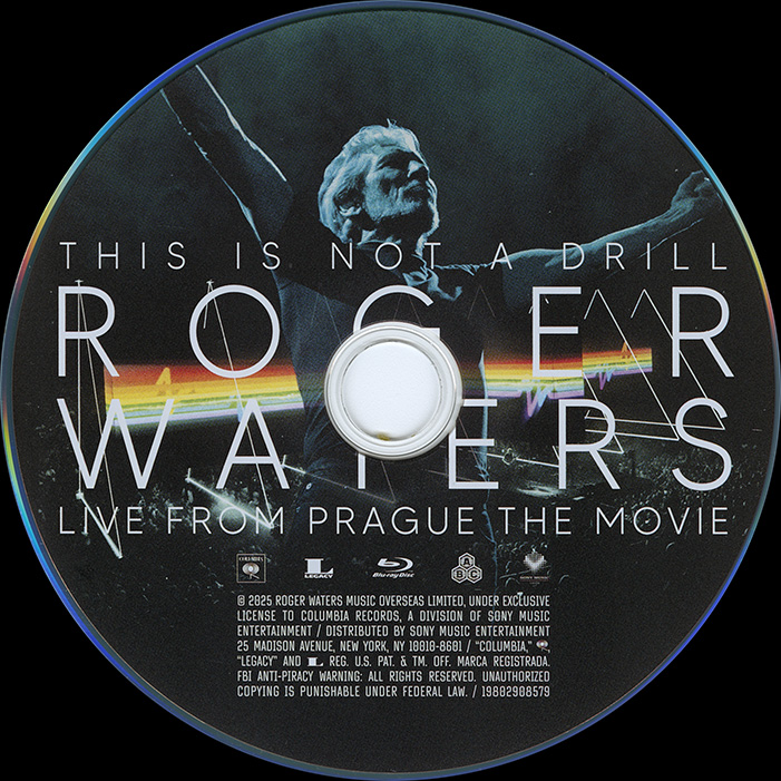 Slip Case: Blue-ray is issued in a slip case that is open at the top and bottom. Title and a picture of Roger Waters over the concert on the front. Credits on the back.