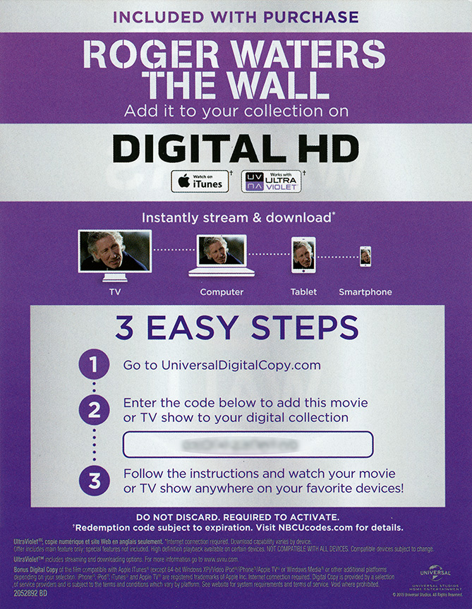 Insert: [front] [back] Digital HD download insert.
