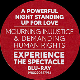 Cover Sticker: Red round cover sticker that says "Deluxe 2-Blu-Ray + 2-CD Set. Includes almost two hours of bonus material! "a =...a galaxy of stars for a Rockin' Tribute" - NY Daily News. 30009-Z."