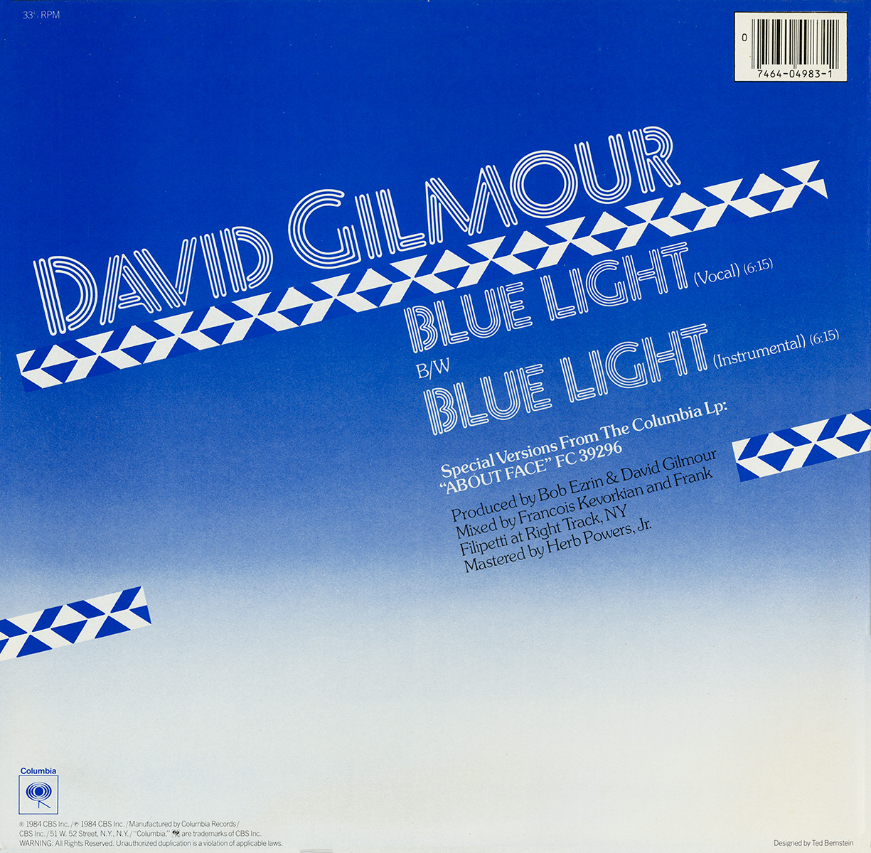 Back Cover: Blue with song titles and credits. Bar code.
