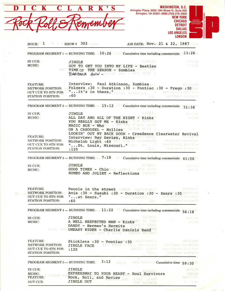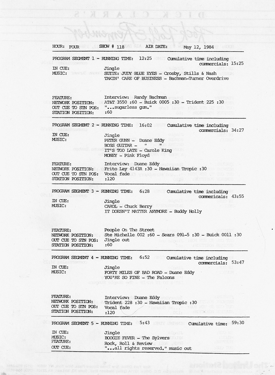 Release Information: A 2-LP radio show hosted by Dick Clark. Features music by Johnny Mathis, The Rolling Stones, Elvis Presley, The Safaris, The Crickets, The Eagles, Bobby Vinton, Paul Peterson, Pink Floyd, and Buddy Holly. Cue sheets.
