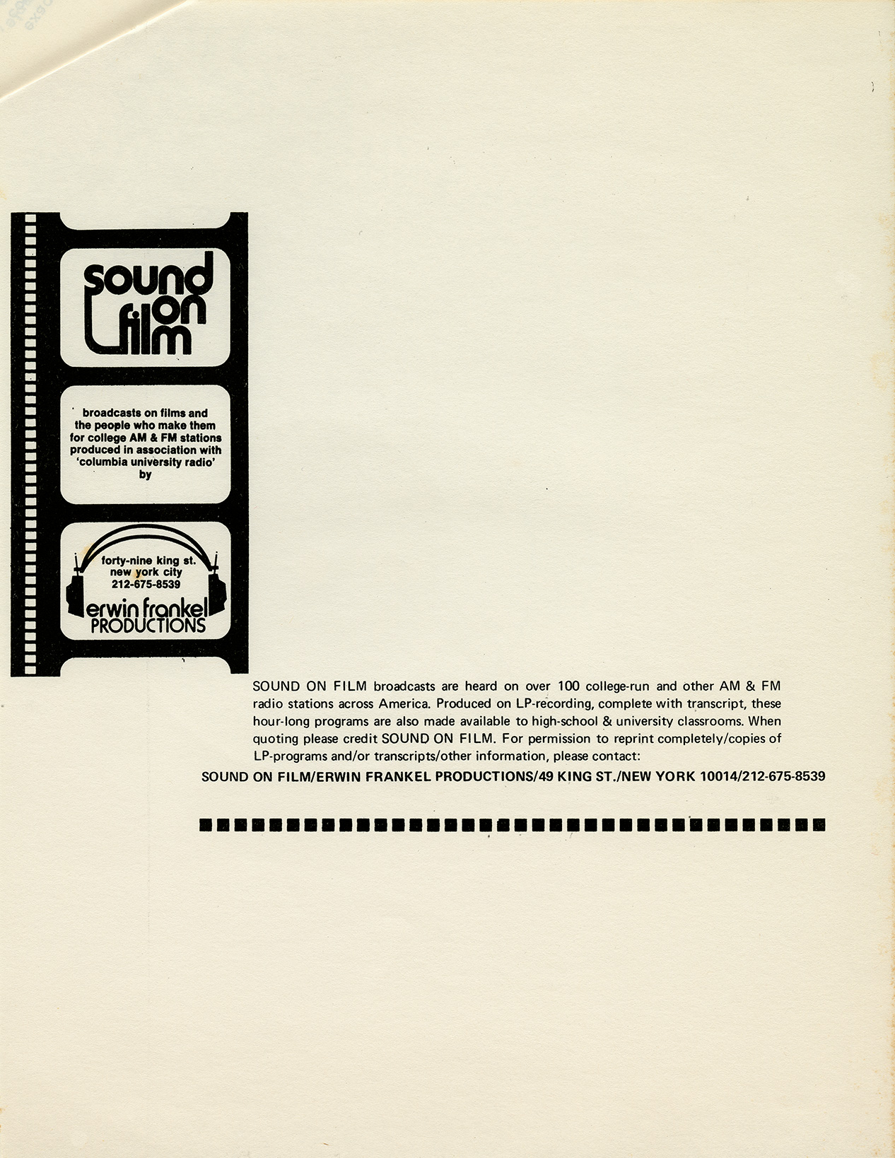 Show Number: Sound on Film, Radio Program 5, May 1970