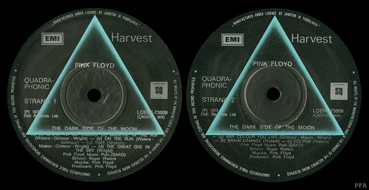 Labels #2: Black picture label with prism. "QUADRAPHONIC" is on one line. JUS. N. N4 201 on left.