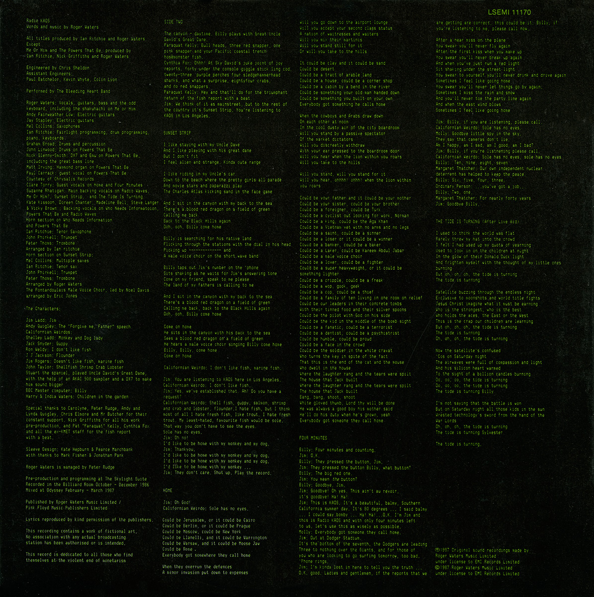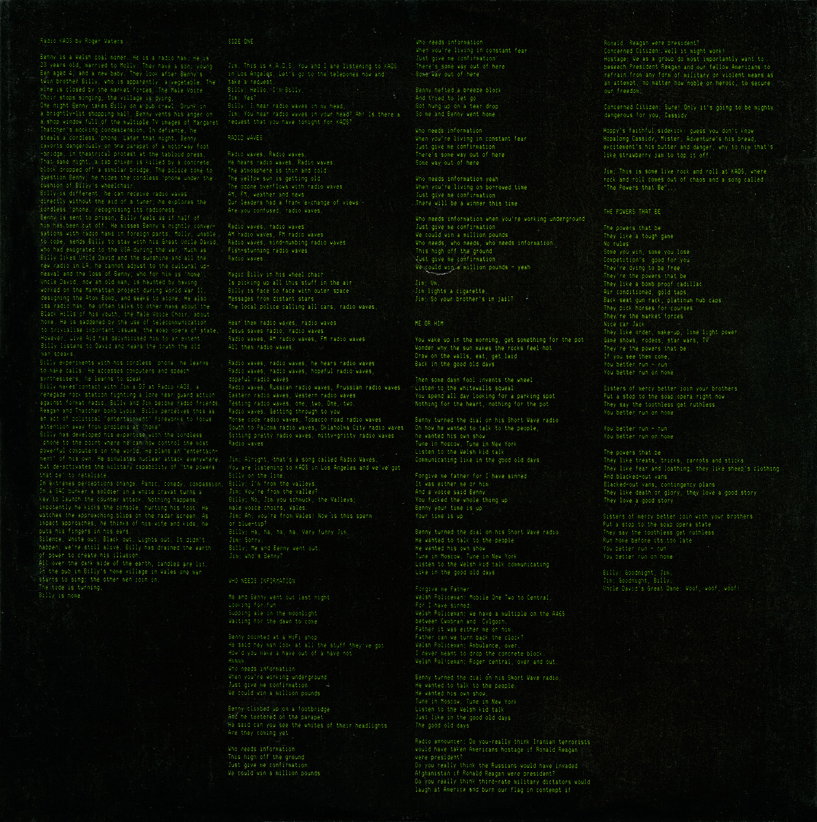 Inner Sleeve: [front] [back] Black cardboard inner sleeve with lyrics in green.