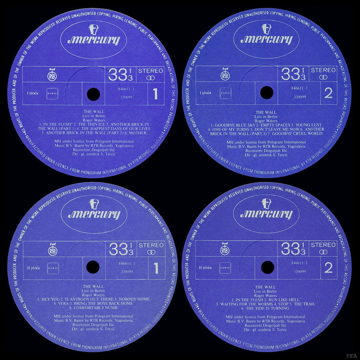 Back Cover: Credits. "Recenzent Dragoljub Ilic/Direktor - glavni urednik Stanko Terzic / Mfd under licence from Polygram International Music B. V. Baarn by RTB Records, Yugoslavia."