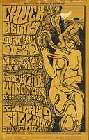 BG 55-1 - Chuck Berry / Grateful Dead / Johnny Talbot and de Thangs, March 17-18, 1967 (art by Wes Wilson), postcard, tape damage on top and bottom edges, small surface tear at top, $8