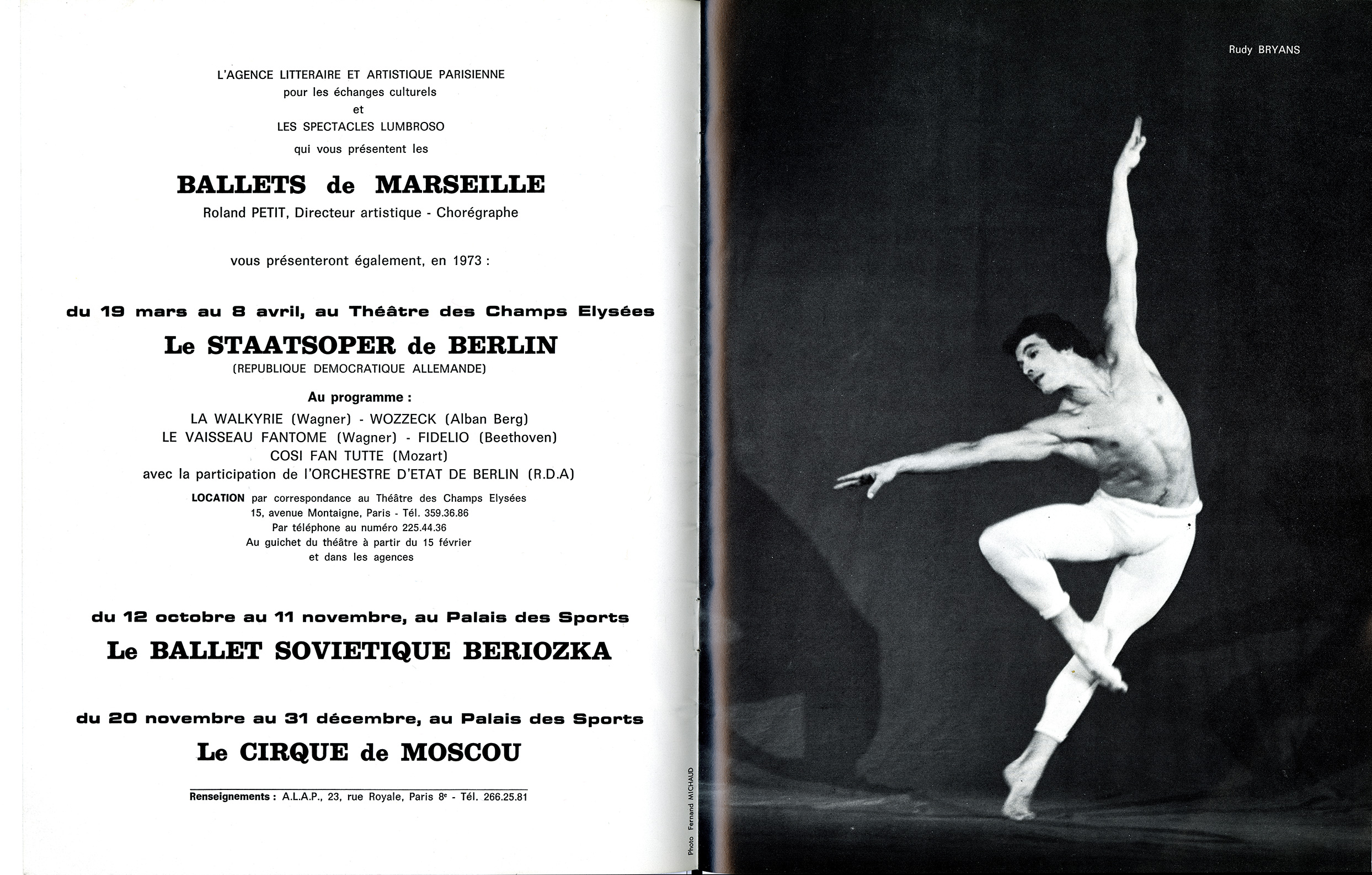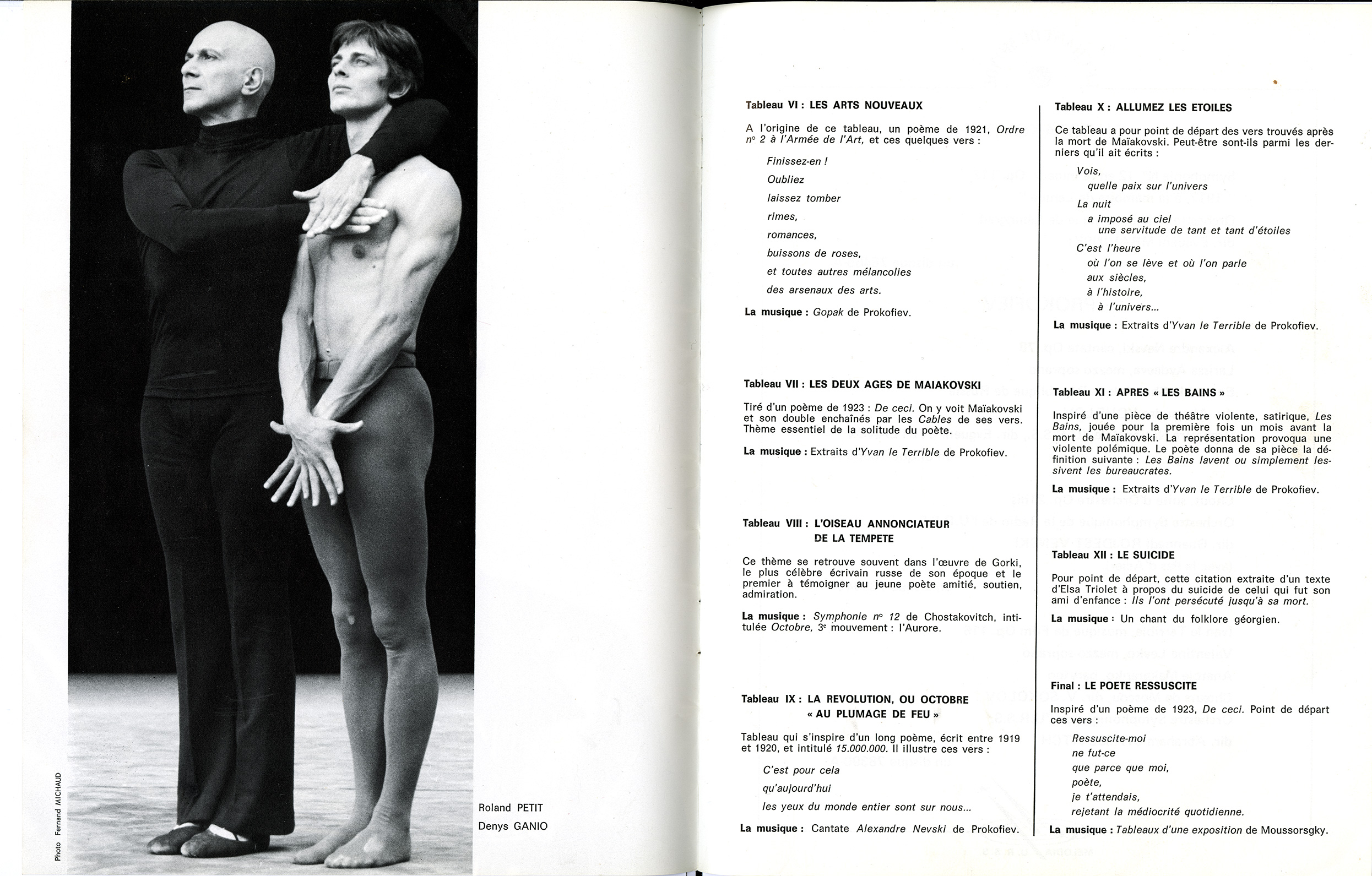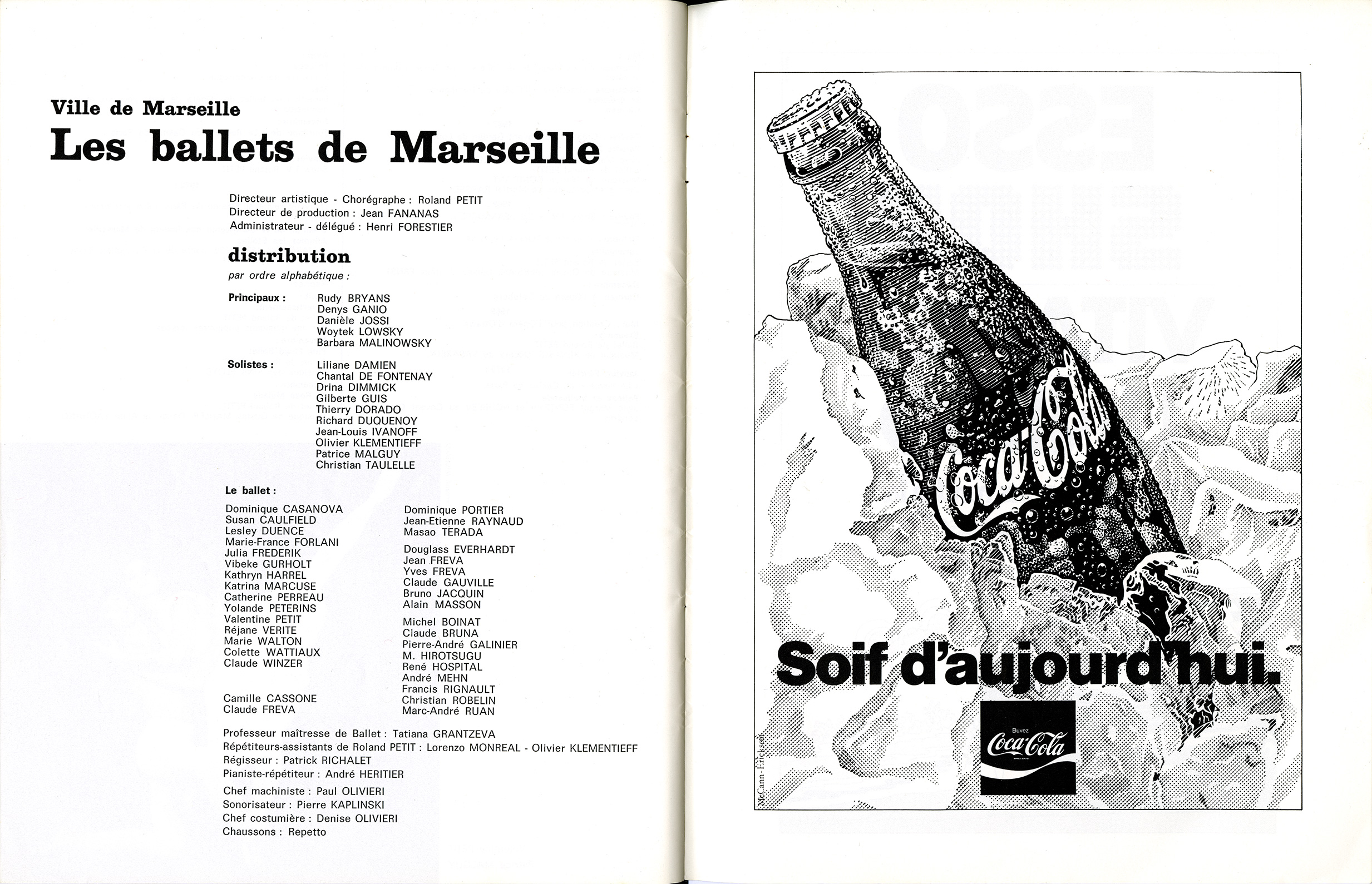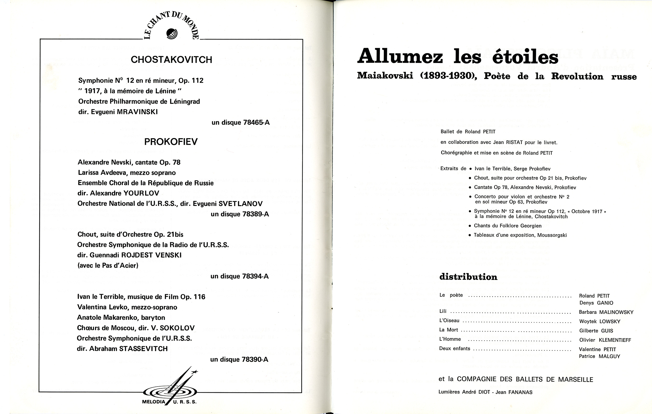 Folder Info: Includes extensive information in French about the Roland Petit ballet, dancers, and director Roland Petit. Features four pages about Pink Floyd, with a brief history of the band, a full page photo of the band members, an ad for Pink Floyd albums, and a page about the Pink Floyd ballet.