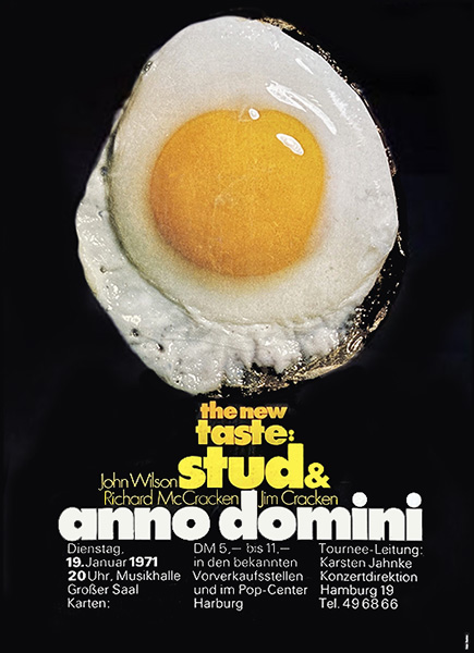 Notes: A poster for Stud and Anno Domini at the Musikhalle, Grosser Saal in Hamburg, West Germany on January 19, 1971.