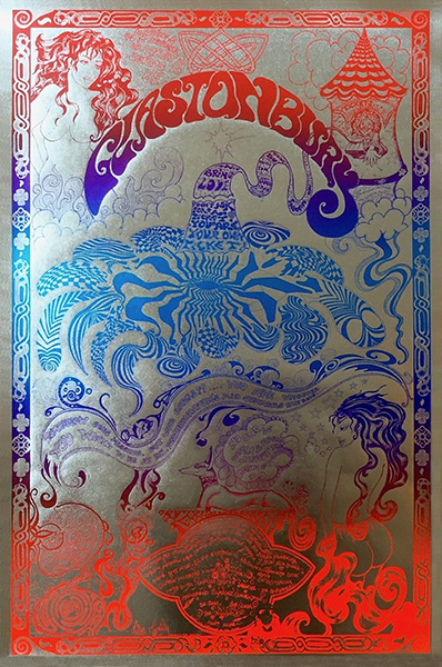 Notes: A poster celebrating Glastonbury in England. One of Nigel's "Spirit of the Sixties" posters.