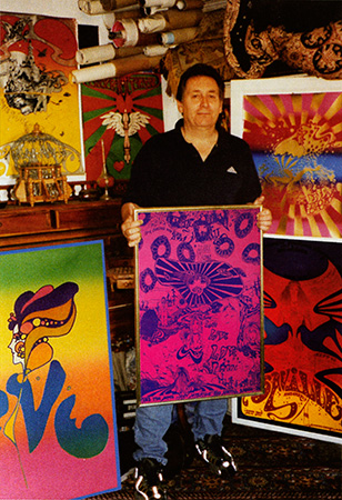 To his left is a copy of the Pink Floyd UFO poster from June 2, 1967 that he reprinted.