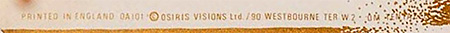 "PRINTED IN ENGLAND / OA104 © OSIRIS VISIONS Ltd. 90 WESTBOURNE TER. W 2"