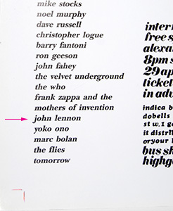 The original poster for the 14 Hour Techncolor Dream was altered by adding various bands to the list of performers (such as "frank zappa and the mothers of invention" and "john lennon," above "yoko ono").