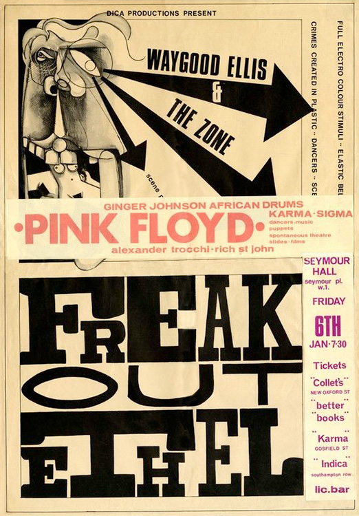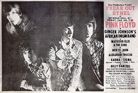 Notes: A poster for the Pink Floyd performance at the Seymour Hall in London, England on January 6, 1967.