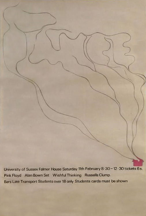 Notes: A poster for the Pink Floyd show at Sussex University in Brighton, England on Saturday, February 11, 1967.
