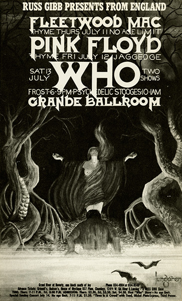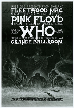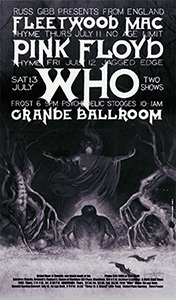 Bands: Fleetwood Mac, Thyme, Pink Floyd, Jagged Edge, Who, Psychedelic Stooges