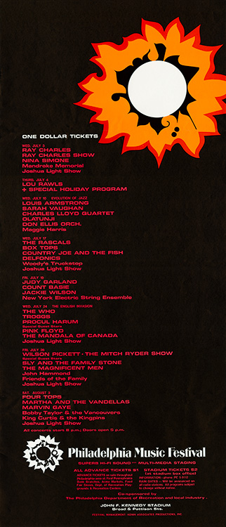 Notes: A poster for the Summer Music Festival at JFK Stadium in Philadelphia, Pennsylvania on July 3 through August 3, 1968.