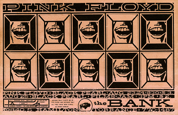 Notes: A poster for Pink Floyd concerts at The Bank in Torrance, California on August 23-24, 1968.