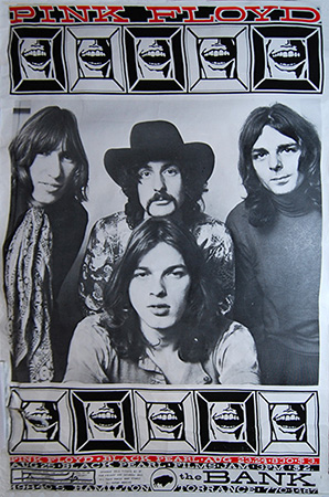 This commemorative poster used the art from the original Bank poster at the top and bottom, along with a period picture of Pink Floyd in the center.