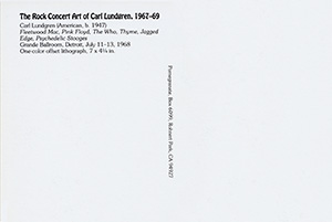 Notes: A 2004 reprint of the Oakland Pop Festival card by Carl Lundgren. Signed on the back by Carl Lundgren.