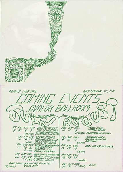 4a) Avalon Ballroom calendar handbill, double postcard #2