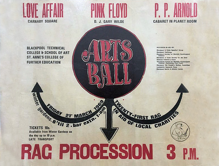 Notes: A poster for Pink Floyd at the Arts Ball on March 21, 1969.