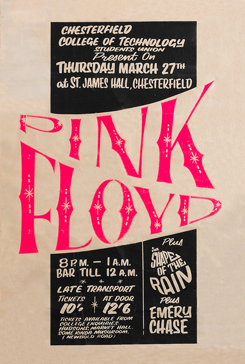 Notes: A poster for Pink Floyd at St. James Hall in Chesterfield, England on March 27, 1969.
