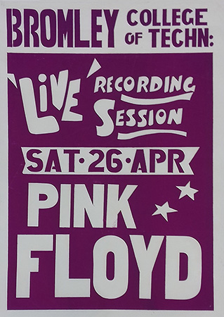 Notes: A commemorative poster for Pink Floyd at the Technical College in Bromley on April 26, 1969.
