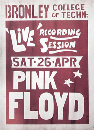 Notes: A reproduction of the commemorative Pink Floyd poster from the Technical College in Bromley on April 26, 1969.