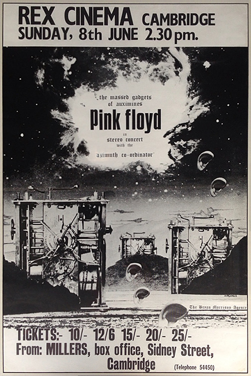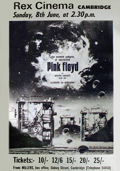 Notes: A poster for the Pink Floyd show at the Rex Ballroom in Cambridge on June 8, 1969.