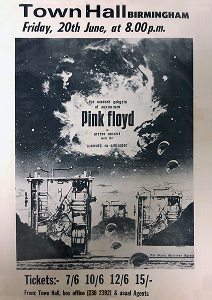Notes: A poster for the Pink Floyd show at the Birmingham Town Hall on June 20, 1969. Litho printed.