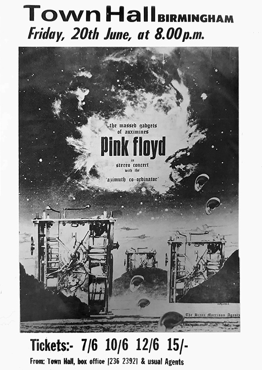 Notes: A handbill for the Pink Floyd show at the Birmingham Town Hall on June 20, 1969.