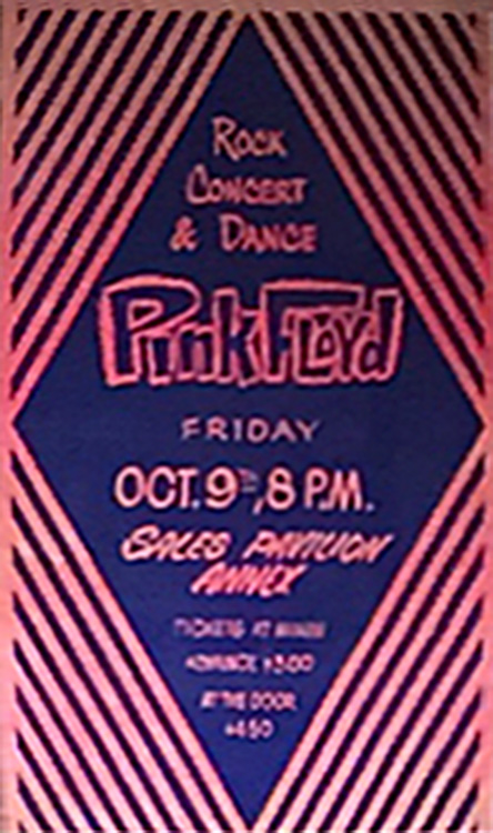 Notes: A poster for Pink Floyd at the Sales Pavilion Annex in Edmonton, Alberta, Canada on October 9, 1970.