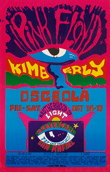 Notes: A poster for Pink Floyd at Pepperland Auditorium in San Rafael, California on October 16-17, 1970.