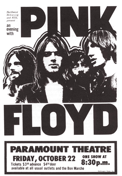 Notes: A poster for the Pink Floyd concert at the Paramount Theater in Seattle, Washington on October 22, 1971.