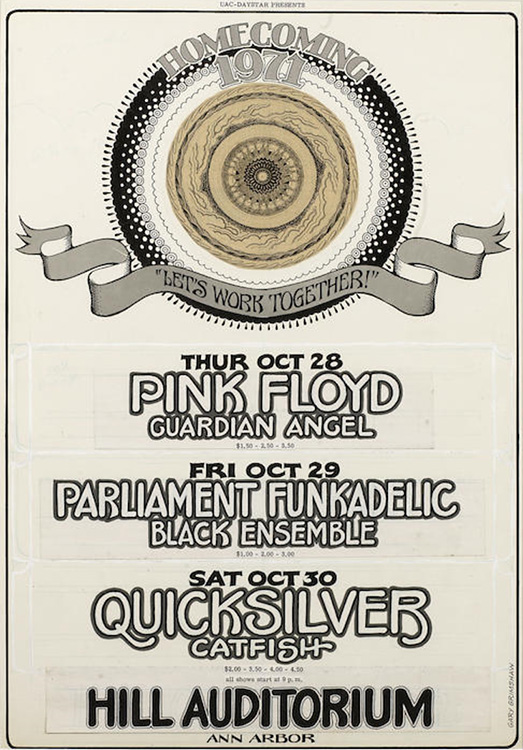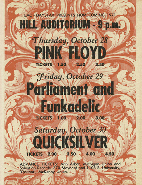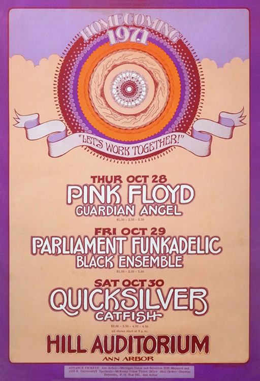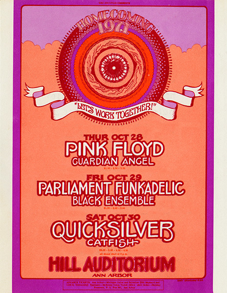 Notes: A poster for the Pink Floyd concert at Hill Auditorium in Ann Arbor, Michigan, October 28, 1971.