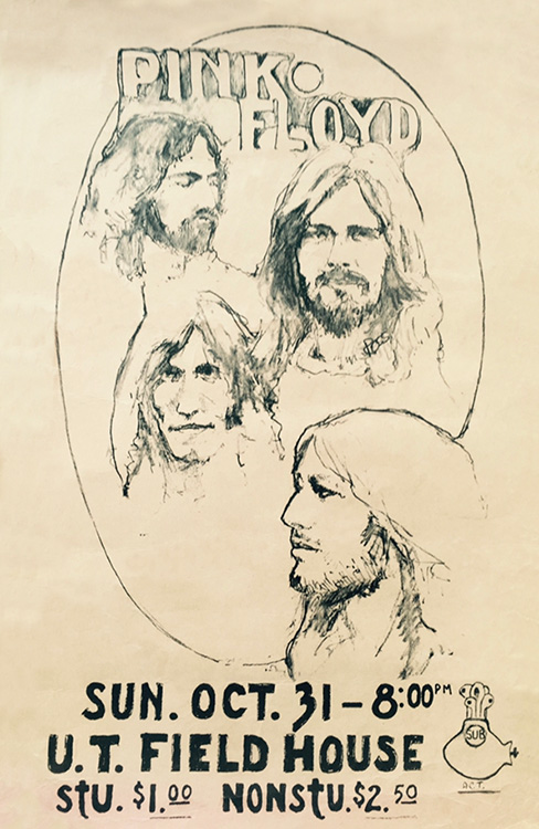 Notes: A poster for the Pink Floyd concert in the Fieldhouse at the University of Toledo, Ohio on October 31, 1971.