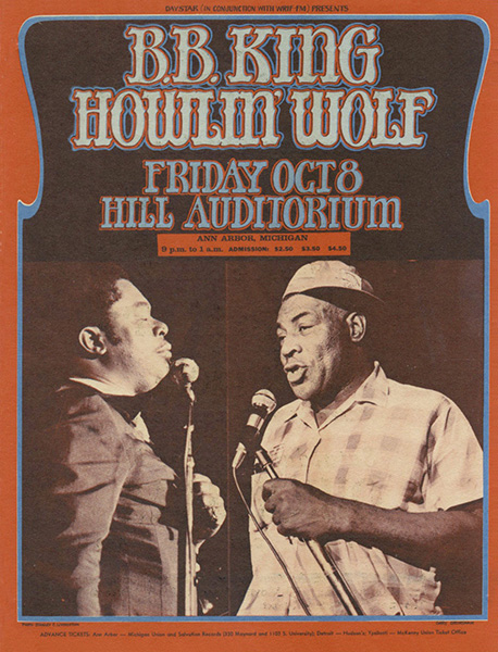 Bands: B.B. King, Howlin' Wolf, Pink Floyd, Parliament Funkadelic, Quicksilver