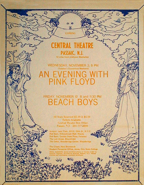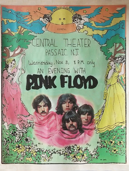 Notes: A poster for the Pink Floyd concert at the Central Theater in Passaic New Jersey on November 3, 1971.