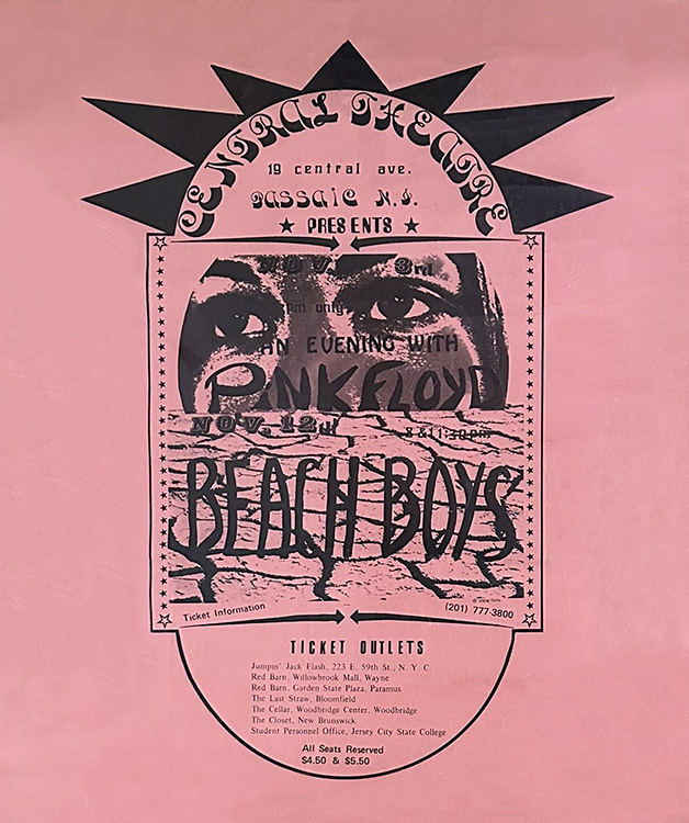 Notes: A handbill for the Pink Floyd concert at the Central Theater in Passaic New Jersey on November 3, 1971.