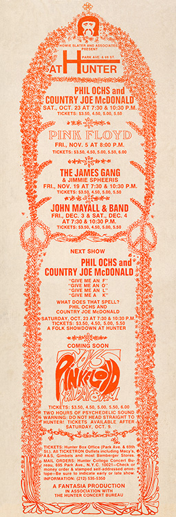 Notes: The original poster for concerts at Hunter College in October, November, and December 1971. These shows were Fantasia Productions in association with The Hunter Concert Bureau.