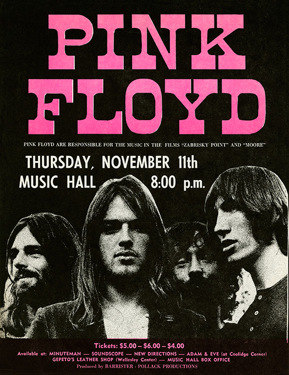 Notes: A poster for the Pink Floyd concert at the Boston Music Hall in Boston, Massachusetts on November 11, 1971.