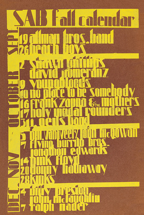 Notes: A poster for Stony Brook College fall concerts in September-December 1971.