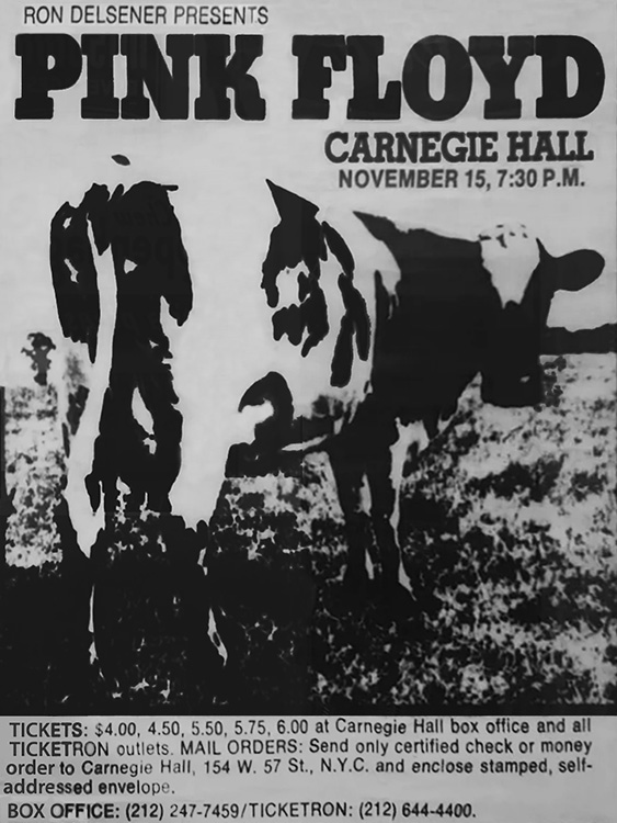 Notes: A poster for the Pink Floyd concert at Carnegie Hall in New York City, New York on November 15, 1971.