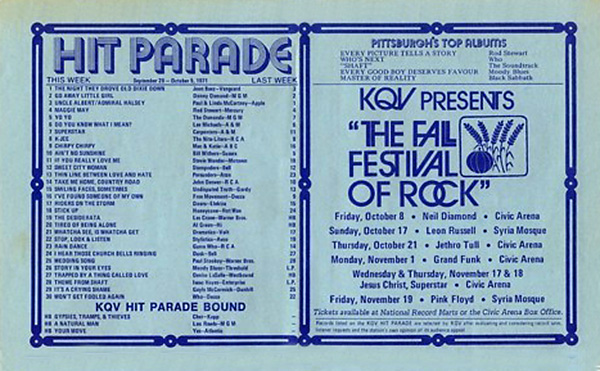 Bands: Neil Diamond, Leon Russell, Jethro Tull, Grand Funk Railroad, Pink Floyd