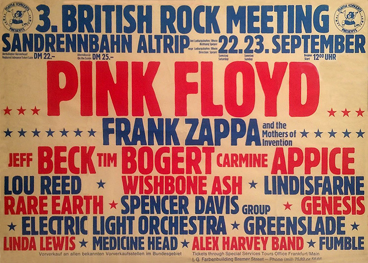 Notes: A reprint, with bands added, of the poster for the 3rd British Rock Meeting in Frankfurt West Germany on September 22 & 23, 1973.