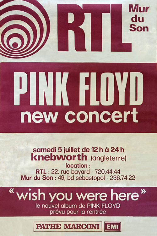 Notes: A French poster the Knebworth Festival held at Knebworth Park in Knebworth, Hertfordshire, England on July 5, 1975.