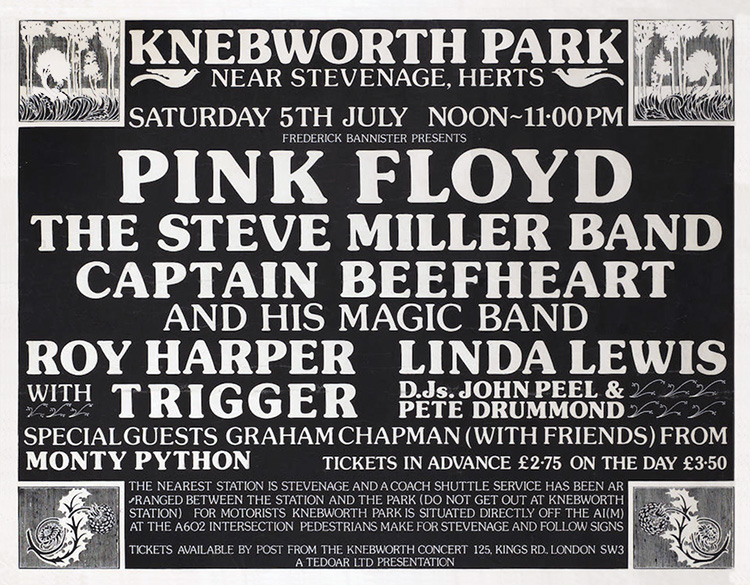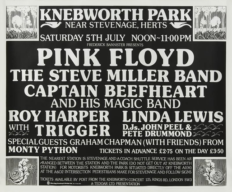 Bands: Pink Floyd, The Steve Miller Band, Captain Beefheart and his Magic Band, Roy Harper with Trigger, and Linda Lewis.