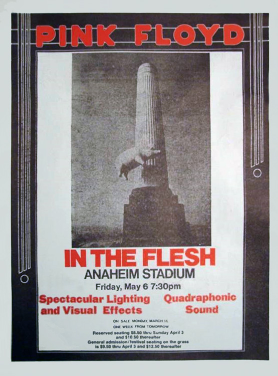 Notes: A poster for the Pink Floyd concerts at Anaheim Stadium in Anaheim, California on May 6, 1977.