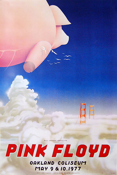Notes: Original poster for the Pink Floyd concerts at Alameda Coliseum in Oakland, California on May 9-10, 1977 with grayish clouds.